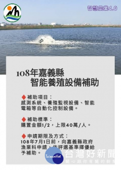嘉縣啟動智能養殖漁業補助 7/1前受理申請