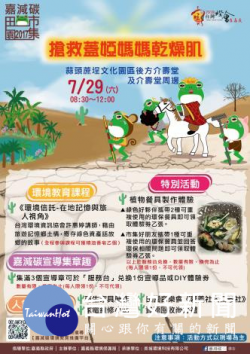嘉義縣嘉減碳田園市集29日登場 嘉義縣嘉減碳田園市集於7月29日上午8:30到12:00登場,此次主題以希臘神話中的大地女神「蓋婭」為核心,探討世界荒漠化和乾旱世界日的環境議題,到時會在蒜頭糖廠蔗埕文化園區介壽堂周邊舉辦,邀請大家一同正視土地合理規劃使用問題。 本月市集環境教育課程邀請台灣環境資訊協會許惠婷講師講授「環境信託-在地記憶與旅人視角」...... [閱讀更多]