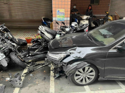 桃園區龍泉六街日前發生一起連環撞車禍事故,一輛由停車場開出,由47歲曾姓男子所駕駛的自小客車,與直行由28歲任姓男子所駕駛的自小客車發生碰撞,導致任男的自小客車失控衝撞路邊停放的機車共18台,警方獲報後立即趕抵現場處理,雙方駕駛經測試均無酒精反應,相關肇事責任將由警方進一步調查釐清。 任男的自小客車失控衝撞路邊停放的機車共18台。圖:讀者提供 ...... [閱讀更多]