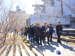 高雄市長陳菊帶團考察紐約市區綠地景觀規劃。(圖/高雄市政府提供) 高市府參訪團18日考察行程主要觀摩紐約市區綠地景觀規劃,高雄市長陳菊上午先率團參訪了紐約市曼哈頓「中央公園」,下午走訪由舊鐵路改造而成的「高線公園」,隨後轉往「哈德森園區」,瞭解港灣區旁廢棄鐵道場的再造成果,作為未來高雄打造鐵路綠廊道之借鏡。 高雄市長陳菊率市府參訪團上午先...... [閱讀更多]