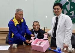 陳映澄醫師(圖右)代表醫療團隊貼心贈送「滴雞精」讓蕭阿公(圖中)補身子。(圖左:蕭阿公兒子 - 蕭進財 83歲老翁蕭火獅年初在家因喘、胸悶送急診並緊急插管,隨後確診為冠狀動脈狹窄合併嚴重主動脈瓣膜狹窄,心臟功能僅剩25%需緊急開刀且因老翁狀況不佳,經評估手術風險為45%,所幸於彰化基督教醫院心臟外科、心臟內科及麻醉科攜手合作下,完成經導管主動脈...... [閱讀更多]