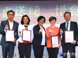 彰化縣長王惠美頒發感謝狀感謝台積電慈善基金會董事長張淑芬、桂冠實業董事長特助陳玉翎、欣向美牙醫診所院長吳明哲、建國科大等人。圖/記者鄧富珍攝 為有效結合民間企業資源運用於社會福利服務,彰化縣政府結合台積電慈善基金會、桂冠實業及欣向美牙醫診所等企業,共同挹注資源,舉辦「餐桌送暖,惜食餐會」公益活動,彰化縣長王惠美與台積電慈善基金會董事長張淑芬、桂...... [閱讀更多]