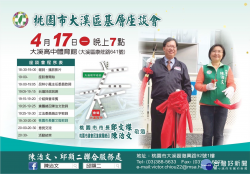 民進黨在大溪將辦基層座談會,黨團總召陳治文和鄭文燦希望民眾踴躍前往提出建言,共創未來美好的大溪。(圖/陳寶印攝) 為了讓大溪區民了解桃園市政府現於大溪地區所做的施政方針與目標,以及提供大溪民眾有提出建言的平台,民進黨17日晚間將首次在大溪舉辦大溪區基層座談會,民進黨籍的現任市長鄭文燦將親臨,市黨部主任委員呂林小鳳也將出席,希望藉由這項座談會後,擬定大...... [閱讀更多]