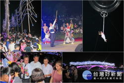2018宜蘭七夕情人節在安農溪浪漫登場。(圖/陳木隆攝) 「2018宜蘭情人節」8月17日晚上在「安農溪.分洪堰風景區」揭開為期3天的浪漫盛會。開幕儀式不僅點亮雙星光銀河鵲橋,更依現場水岸特性編創「天水傳奇」陸、水、空舞劇,結合燈光、音效等效果,搭配直徑8米的大氣球,織女從夜空緩緩降臨人間與牛郎相會,令人耳目一新,當五光十色的燈飾燦然亮起,浪漫...... [閱讀更多]