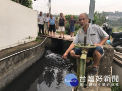 天鴿颱風過境,大甲22日清晨開始下雨,義和二街的灌溉溝同時流下 如墨汁的污水,里長與里民眼睜睜的看到為害地方,卻束手無策。( 記者陳榮昌攝) 天降雨水,灌溉溝就流黑水。颱風過境台灣,大甲地區清晨下起大雨,義和里即時出現大量如墨汁夾帶臭味的污水流進灌溉溝,里長王啟明除派人查尋那家工廠偷排,並撥1999專線請求處理。王里長說,很奇怪,電話打後,半個小時就...... [閱讀更多]