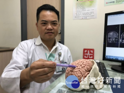 43歲壯年的施姓男子身體不適疑為中風,經大甲光田綜合醫院神經外科主任林牧熹檢查後,指他是顱中竟有個7公分大的腫瘤,壓迫到大腦運動皮層區才致肌肉無力 猶如中風相似般的病況。(記者陳榮昌攝) 民眾熟知身體突無力、流口水、語意不清是中風症狀,但大甲光田綜合醫院神經外科主任林牧熹指發生這些症狀並不一定都是中風,43歲壯年的施姓男子,日前起床時發現身體左...... [閱讀更多]