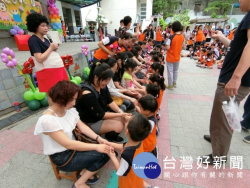 臺中市立大安幼兒園舉行108年「慶祝母親節感恩親子手作活動」,失真的孩子為母親擦拭護手霜、送花及獻吻,讓媽媽們開心的笑,現場揚溢著溫馨感人與熱鬧。(記者陳榮昌攝) 臺中市立大安幼兒園昨日在園區廣場舉行108年「慶祝母親節感恩親子手作活動」,家長陪園內240名幼兒參加,老師陳冠維、張鳳珍以戲劇方式扮演兒子和媽媽演出,活動以貼近幼兒的生活教育為...... [閱讀更多]