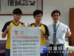 108年度高職科技院校繁星放榜,大甲高工機械科學生王建元錄取臺灣科技大學機械工程系,建築科學生林士宸錄取臺灣科技大學建築系,校長簡慶郎肯定倆位同學在校的的勤學所得。(記者陳榮昌攝) 108年度高職科技院校繁星放榜,大甲高工表現十分亮眼,機械科學生王建元錄取臺灣科技大學機械工程系,建築科學生林士宸錄取臺灣科技大學建築系。校長簡慶郎肯定王、林倆位...... [閱讀更多]
