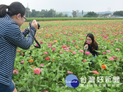 外埔景觀作物輔導成效良好 百日草迎風搖曳吸引遊客拍照