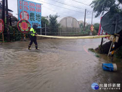龍潭豪雨造成道路淹水 警冒雨交管排除道路障礙