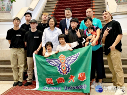蔡英文接見開南熱舞社 靦腆配合比出「DAB」嘻哈手勢