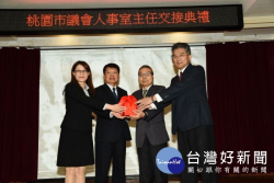 議會人事主任王偉曦〈右一〉履新,在人事總處副人事長懷敘〈右二〉監交。 桃園市議會新任人事主任交接典禮29日下午舉行,新任人事主任王偉曦由花蓮縣政府回桃履新,他強調,在花蓮學會兩件事,一是接地氣,一是種福田,出身桃園的他,未來也將本著服務的精神,協助議長、副議長,為大家服務。 桃園市議會人事主任黎素貞去年12月25日榮退,人事主任一職由專員...... [閱讀更多]