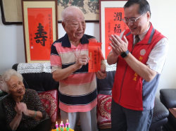 新北榮民百歲壽誕 榮服處長轉贈壽屏及紀念飾品