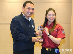 新北市長侯友宜12日於市政會議室,頒獎給新北市義勇消防總隊第一大隊新板山搜分隊小隊長詹喬愉,以表揚其成功登上世界最高峰-聖母峰之榮舉。(圖/記者黃村杉攝) 新北市長侯友宜12日於市政會議室,頒獎給新北市義勇消防總隊第一大隊新板山搜分隊小隊長詹喬愉,以表揚其成功登上世界最高峰-聖母峰之榮舉,因詹喬愉本身為新北市義消人員,侯友宜以大家長的身分表達恭...... [閱讀更多]