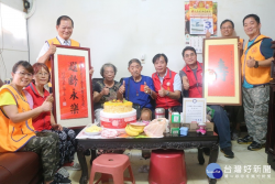 新北市百歲榮民鄧士才5日百歲壽誕,榮民服務處組長陳重榮轉贈總統及行政院院長壽屏及輔導會紀念飾品。(圖/榮服處提供) 新北市百歲榮民鄧士才5日百歲壽誕,榮民服務處組長陳重榮轉贈總統及行政院院長壽屏及輔導會紀念飾品;另社團法人中華佛教善緣慈善會,轉發其提供的生日禮金。榮服處同仁並與大家一起合唱生日快樂歌慶祝百歲壽誕。 榮服處指出,鄧爺爺民國9...... [閱讀更多]