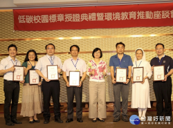 新北市環保局4/30舉行低碳校園標章授證典禮,副局長王美文親自頒發低碳校園標章給15所獲獎學校。(圖/記者黃村杉攝) 新北市環保局4/30舉行低碳校園標章授證典禮,副局長王美文親自頒發低碳校園標章給15所獲獎學校,除感謝各校在環保行動上的努力,同時也強調環保概念的推動與紮根需要透過教育延續下去,在時間的催化下,期待環保種子在未來都能成長茁壯,成...... [閱讀更多]
