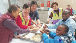 臺北醫院志工帶(ACC)長期助養的非洲兒童包水餃,讓跨國際、跨世代的爺孫們共渡健康愉快的新年 。(圖/臺北醫院提供) 衛生福利部臺北醫院7日與元亨寺台北講堂合辦「愛心無國界 Happy迎新年」活動,邀請阿彌陀佛關懷中心(ACC)長期助養的非洲兒童及臺北醫院長期關懷的弱勢家庭、獨居老人與失智長者共同參與,進行祖孫傳情包水餃、黑寶貝牙科義...... [閱讀更多]