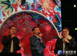 民歌才子趙樹海及王夢麟與新北市長朱立倫合唱《廟會》,將氣氛熱到最高點。(圖/記者黃村杉攝) 新北市民歌演唱會22日晚間再度擠爆市民廣場,邀請共16組、18位各世代的民歌手演唱,卡司陣容堅強、絕無僅有、新北限定,就是要帶給歌迷最豐富、最有層次的視聽覺饗宴,展現經典歌曲帶給人們的美好回憶與時代眷戀。 演唱會由現役民歌西餐廳駐唱歌手黃晨富與江玉...... [閱讀更多]