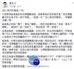 前新北市政府副發言人、新北市議員參選人葉元之臉書。(圖/記者黃村杉翻攝) 備受爭議的深澳電廠,除新北市政府和環保人士強力反彈,鄰近縣市也關切,尤其行政院長賴清德一席「乾淨的煤」引發熱烈討論,民進黨新北市長參選人蘇貞昌對深澳電廠的態度言論,立即受到大家的注意。 蘇貞昌說,「若深澳電廠沒安全有汙染,就不同意」,對此,前新北市政府副發言人、新北...... [閱讀更多]