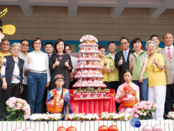 蘆洲國小14日歡慶120週年,教育局長林奕華、立委、議員等到場祝賀。(圖/記者黃村杉攝) 蘆洲國小14日歡慶120週年,教育局長林奕華親自到場祝賀,傑出校友李壽夫創設的「龍鳳堂餅舖」製作3千多個壽桃及蛋糕,與紫禁城博物館王兩傳館長親手製作狀元帽為學校獻上祝福。 林奕華表示,民國前14年在蘆洲湧蓮寺裡草創了...... [閱讀更多]