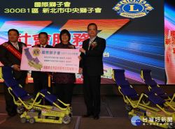 中央獅子會在授證37周年上捐贈新北市3部爬梯機,左1為廖建興會長。(圖/社會局提供) 新北市中央獅子會舉行授證37週年紀念典禮,會中捐贈新北市政府3台履帶式爬梯機,並現場演練如何操作履帶式爬梯機。體重102公斤的會長廖建興親自坐上爬梯機體驗,指坐起來非常舒適安全,很適合身障者或年老失能的長輩上下樓梯,減輕家人或照顧者要揹或移動的辛勞。 若...... [閱讀更多]