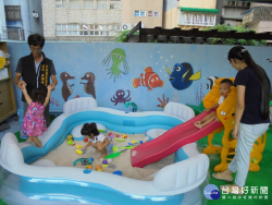 瑞芳區龍興里因缺乏公園休憩空間,也沒有兒童遊戲區,里長黃錫基自掏腰包400多萬元買下民權路鐵道旁40坪閒置空地,帶領志工將水樂園老舊牆面彩繪成海底世界、架設室內沙坑、戲水池,打造成兒童專屬水樂園,開放3個月來,水樂園時時充滿歡笑聲。 有機械製圖專長的黃錫基里長,還將水樂園的大門布置成會呼吸的綠牆,利用廢棄的植栽回春,讓室內空間降溫不少,並以屋頂回收的雨水...... [閱讀更多]
