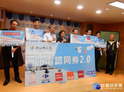 副局長王美文及通路商代表等出席啟動節電認同券2.0計畫記者會。(圖/記者黃村杉攝) 新北市繼104年全國首創推出「節電認同券」後,12日再推出「新北市節電認同券2.0」的進階版活動,只要加入活動並於指定合作通路汰換並新購符合1級能效的冰箱或冷氣,立即享有合作通路商的購物優惠。 副局長王美文表示,104年推出節電認同券,計吸引約4萬6,000戶民眾...... [閱讀更多]