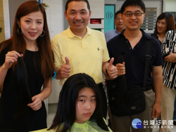 副市長侯友宜頒發感謝狀給參加捐髮者和協助單位,盛讚每位捐髮者,不僅頭髮美,心地更美。(圖/記者黃村杉攝) 捐髮助癌童活動14日在新店區民權路小林髮廊舉行,共募得33束秀髮,包含在現場剪下的10束,將全部交由財團法人癌症希望基金會製成假髮,給因化療而失去秀髮的病童使用,副市長侯友宜特地到場鼓勵,除頒發感謝狀給參加捐髮者和協助單位,更盛讚每位捐髮者,不僅...... [閱讀更多]
