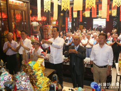 市長朱立倫17日由民政局長江俊霆、新莊區議員等陪同參香祈福。(圖/記者黃村杉攝) 農曆6月24日是關聖帝君1857週年聖誕,新北市長朱立倫17日由民政局長江俊霆、新莊區議員、里長、區長、仕紳及信眾等陪同參香祈福,祈求新北市民平安順適、市政推動圓滿順利。 朱立倫強調,關聖帝君「忠義」的精神受到全民敬仰,是台灣各地重要的信仰,指新莊武聖廟是新北市定古...... [閱讀更多]