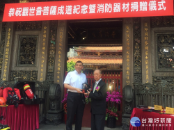 艋舺龍山寺捐贈100套空氣呼吸器及20套潛水裝備,供消防及義消人員補充汰換。(圖/記者黃村杉攝) 臺北市艋舺龍山寺捐贈新北市政府消防局100套空氣呼吸器及20套潛水裝備,捐贈儀式12日於北市艋舺龍山寺舉行,由新北市政府消防局黃德清局長代表接受捐贈並回贈感謝狀。 消防局長黃德清表示,「政府力量有限、民間資源無窮」,感謝艋舺龍山寺之慈善義舉,並對於新...... [閱讀更多]