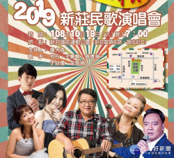 2019新莊民歌演唱會19日(六)晚上7點將在新莊頭前運動公園經典再現。 2019新莊民歌演唱會19日(六)晚上7點將在新莊頭前運動公園經典再現,新莊區公所今年特別邀請到溫柔婉轉的于台煙、幽默風趣的王夢麟、歌聲雄渾遼闊的施孝榮,還有輕細甜美嗓音的何方及民歌搖滾教母金智娟壓軸,與現場民眾一同回味民歌時代的點點滴滴,每位歌手均帶來自己的成名曲,一首...... [閱讀更多]
