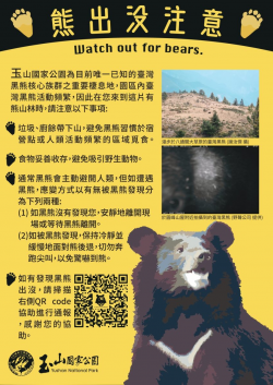 台灣黑熊是台灣唯一原生熊類動物,玉山國家公園為台灣黑熊生活的重要棲息地,玉山國家公園管理處致力推動黑熊研究與保育推廣迄今25年。玉管處指出,玉山園區是目前已知台灣黑熊核心族群主要活動區域,玉山全園區黑熊族群數量概估約為250至300隻。由於玉山園區輻員廣大,棲地完整而連續,生態資源多樣性豐富,遂提供給黑熊生活重要的棲息環境,民眾登山時須留意「熊出沒」。 玉山國家公園...... [閱讀更多]