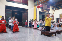 民國77年建宮的無極玄光慈姥總宮主祀瑤池金母,信徒眾多。昨(14)日子時23時15分,舉辦「母娘祝壽典禮」,信徒除準備蛋糕、鮮花、糕餅等供品歡喜參與祝壽,也在典禮後擲筊求取宮內精心準備的結緣小物,直言收穫滿滿。 在宮主黃國誠(黃衣者)帶領下以最敬禮團拜。圖:陳毅攝 無極玄光慈姥總宮宮主黃國誠表示,農曆七月十八日是瑤池金母萬壽,大家都很信仰母娘,借著萬壽的日...... [閱讀更多]