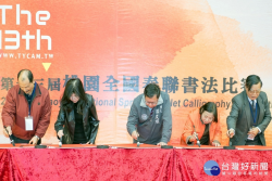 桃園市長鄭文燦與多位書法名家為「第13屆桃園全國春聯書法比賽」進行決賽開筆儀式。 全台規模最大之書法賽事~「第13屆桃園全國春聯書法比賽」26日於桃園市巨蛋體育館登場,桃園市長鄭文燦親臨參加並與多位書法名家進行決賽開筆儀式,共同寫下「兩間含萬類,相感以精誠」,為決賽揭開序幕。 決賽最後由方立權抱走社會組第一名及5萬元獎金,長青組則由林長興...... [閱讀更多]