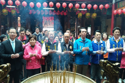 國民黨桃園市黨部新春祈福參拜活動於中壢仁海宮啟航。 國民黨桃園市黨部新春廟宇參拜祈福之旅26日正式啟動,3位桃園市長參選人陳學聖、楊麗環、魯明哲及市議員參選人在主委楊敏盛及百餘支持者的陪同中,第一站前往中壢區仁海宮爭取支持,在充滿濃的年節快樂氣氛中,所有參選人宣示出發,全力爭取選民認同及支持。 國民黨桃園市黨部新春廟宇參拜祈福之旅,26日...... [閱讀更多]