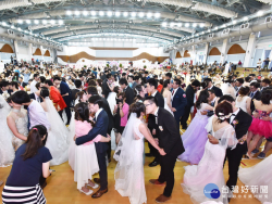 桃園市106年市民聯合婚禮中,100位新郎在司儀的一聲令下親吻新娘。 桃園市106年市民聯合婚禮10月10日國慶日當天於龜山區長庚科技大學盛大舉行,桃園市長鄭文燦親自福證,並祝福100對新人未來的每一天都能互相珍愛、長長久久,期望年輕家庭能夠「好工作、好生活、好好追求人生夢想」,在桃園找尋幸福。 桃園市長鄭文燦10日下午3在副市長王明德、市府民政...... [閱讀更多]