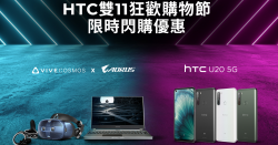 HTC 雙 11 狂歡購物節倒數,HTC U20 5G、VIVE Cosmos x AORUS 15G 優惠限時開搶