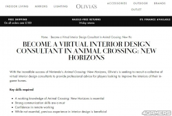 《動物森友會》人氣火爆結果卻衍生出許多特殊的行業,像是有人花重金聘請別人上島幫忙除雜草、砍材等等,而現在的這個更厲害,直接聘請室內設計師,提供「到島服務」來幫客戶做室內設計! 應該奢華家居用品品牌Olivia`s近期就開啟了招聘啟事,聘請《集合啦!動物森友會》(Animal Crossing:New Horizons),需求是需要知道這款遊戲的操作知識、具備溝通以及遠程...... [閱讀更多]
