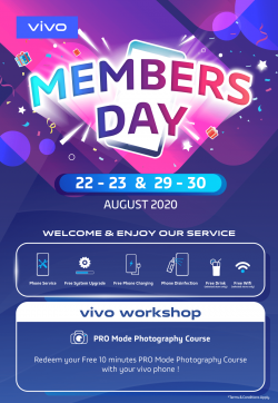 各位vivo手機用戶注意了!vivo將在8月23日與24日、8月29日與30日期間的Member Day活動中推出更豐富的服務內容,在這兩個周末期間到vivo全馬地區的概念店可享有免費的手機維護、系統升級、手機消毒等服務,vivo還會舉辦Pro Mode攝影教學,vivo手機用戶都能免費參加! ...... [閱讀更多]
