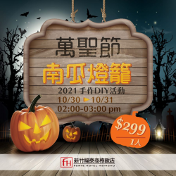 萬聖節活動 10月最熱鬧及受矚目的節日–萬聖節,而最讓人印象深刻的就是南瓜燈籠,可說是萬聖節的代表象徵物,新竹福泰飯店與大家一起歡樂,並有過節的氛圍,特與金色三麥聯名合作萬聖節快閃活動。 特別於10/30 ~ 10/31 的每日下午2時 ~ 3時,安排15人 (每人NTD299 ) 各一場,除了可獲得金色三麥獨特風味啤酒350 cc兌換券之外,同時可參加客製化製作萬聖節南瓜燈籠...... [閱讀更多]