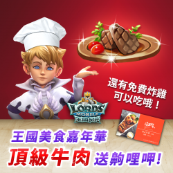 由IGG手遊大廠研發,台灣幻想娛樂獨家代理的即時戰略手遊《王國紀元》(Lords Mobile),在暑假推出一系列好康活動,贈送高階智慧型手機還不夠,又配合時下最夯議題送出熱門卡通電影週邊。而最近新推出「王國美食嘉年華」活動,即將送出牛排及知名韓式餐廳炸雞券,除了各式豐富周邊與虛寶獎勵之外,也不忘顧及各位玩家們的胃! ...... [閱讀更多]