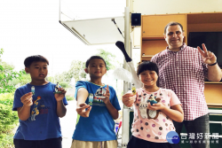 行動英語村 老外帶拿黑琵模型道具教學童學會話