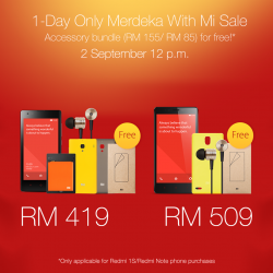 今天中午12 點,小米 3 (RM 769)2,000台 、紅米1s 5,000台(RM419)和 紅米Note (RM 509) 10,000台 開放購買,趕快上 www.mi.com/my 預約參加購買吧。同時,還有10,000 台5200mAh行動電源(RM25)和小米耳機2,500副(RM50) 開賣喔。 另外,凡購買紅米1S及紅米Note將免費獲得分別價值為...... [閱讀更多]