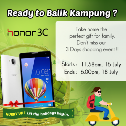 馬來西亞華為最近在面子書上發布了一則關於華為榮耀3C開放3天售賣的公告。該活動是為了配合慶祝馬來新年的同胞們回鄉過年而設,標題為「您準備回鄉了嗎?」。該項活動開放3天,從7月16日早上11時58分開始至7月18日傍晚6時結束。 還沒購入目前火熱的性價比機王——華為榮耀3C的朋友們要趁此機會購入咯!無需搶購,可安心購得。 來源:馬來西亞華為官方面子書 發表意見 ... [閱讀更多]
