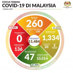 【新冠疫情】大馬10月1日:新增260確診、47治愈、0死亡,活躍病例1334宗!