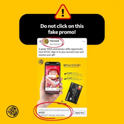 近期內,各式各樣的詐騙手法層出不窮。尤其是假借馬來亞銀行(Maybank)的名義為非作歹的詐騙分子更是多不勝舉。而這一次,又有不法分子再次利用 Maybank 名義進行詐騙,如若你也有諸如此類的經驗就得小心了! Maybank 就於 2 月 28 日在自身 Facebook 網頁表示,該銀行近來接...... [閱讀更多]