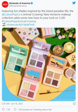 彩妝姐妹看過來!Nintendo和Colourpop合作推《動物森友會》系列彩妝產品!包括眼影盤、唇釉等!