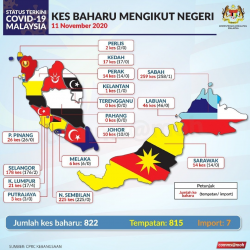 【新冠疫情】大馬11月11日:新增822確診、769治愈、2死亡,活躍病例11497宗!