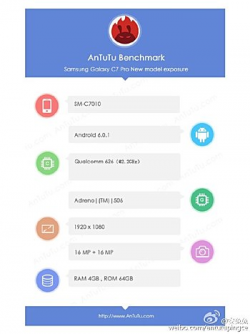 Samsung Galaxy C7 Pro現身AnTuTu,採1,600萬像素前後相機組合?