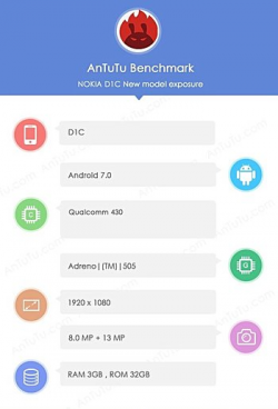 Nokia D1C登陸AnTuTu,再度確認只配中低階規格?